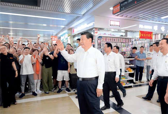2023年9月20日至21日,中共中央總書記、國家主席、中央軍委主席習近平在浙江考察。這是20日上午,習近平在義烏國際商貿城考察時,同商戶親切交流。 新華社記者 李學仁/攝