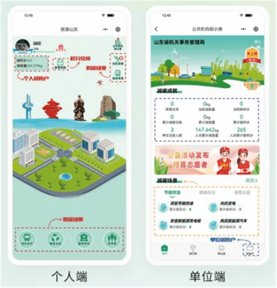 8月7日,山東省機關事務局印發了《關于開展省直機關碳普惠試點的通知》,確定了推廣“公共機構碳小惠”平臺、安裝“碳惠小屋”、實施低碳積分制度三項試點任務。“公共機構碳小惠”平臺基于“碳惠山東”碳普惠平臺開發建設,是試點工作的主要載體。平臺內集成了綠色出行、低碳生活、節能改造等覆蓋個人端的 7 大類 14 項應用場景和單位端的3大類10項應用場景低碳應用場景,單位和個人可通過上述場景參與多種低碳活動,倡導“節能降耗 低碳普惠”的生產生活方式。