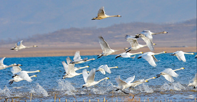 許多南遷的白天鵝選擇在密云水庫濕地逗留。