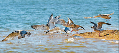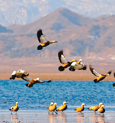 南飛的赤麻鴨在密云水庫棲息“加油”。