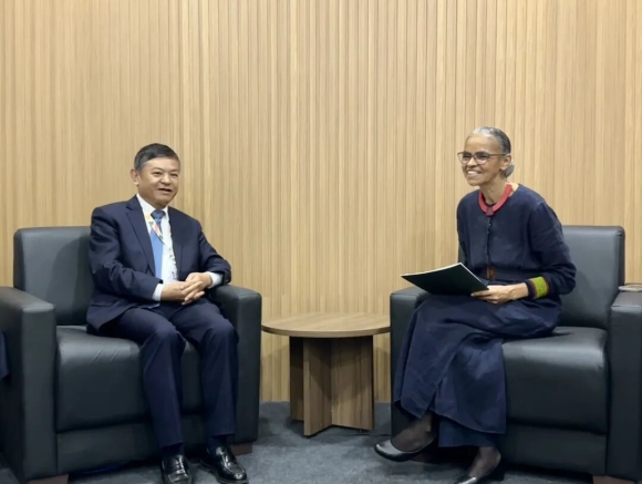 在會(huì)見(jiàn)瑪麗娜·席爾瓦時(shí),黃潤(rùn)秋介紹了近年來(lái)中國(guó)生態(tài)環(huán)境保護(hù)政策與行動(dòng),以及碳市場(chǎng)建設(shè)、適應(yīng)氣候變化等工作開(kāi)展情況,表示將全力支持巴方辦好COP30,期待同巴方深化環(huán)境與氣候領(lǐng)域合作,助力新時(shí)代中巴關(guān)系發(fā)展。瑪麗娜·席爾瓦感謝中方對(duì)巴方在舉辦COP30等方面的大力支持,期待與中方攜手為推進(jìn)全球環(huán)境與氣候治理作出更大貢獻(xiàn)。