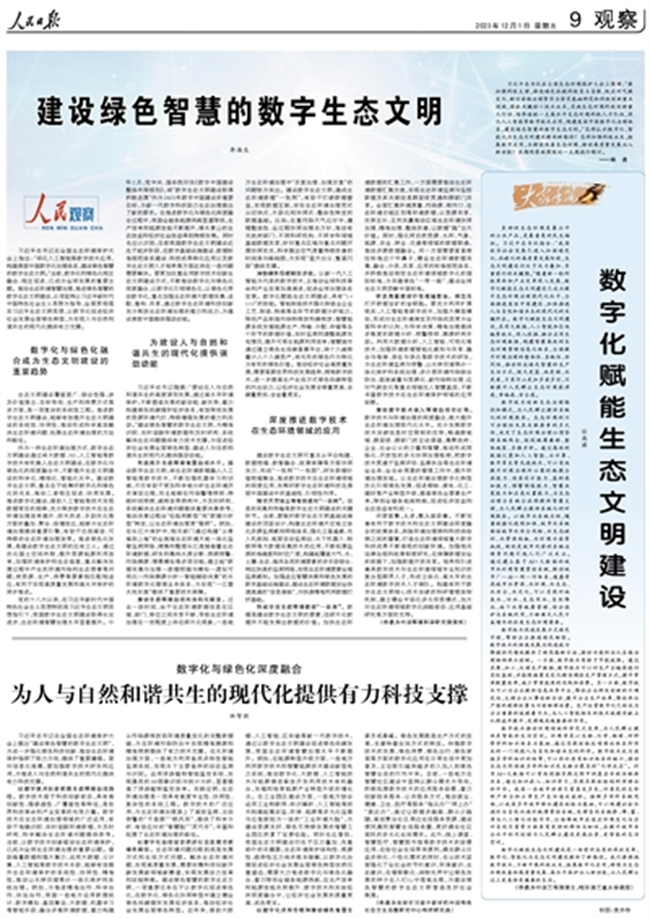 人民日報整版探討:數字化、智能化為生態文明建設提供新路徑