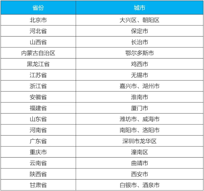 城市試點名單