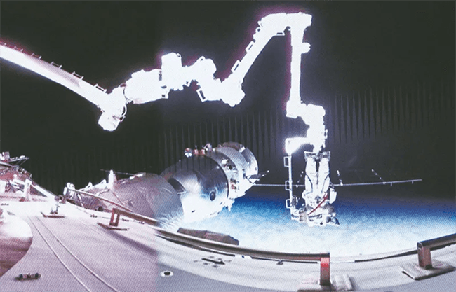 2024年3月2日,神舟十七號航天員乘組第二次出艙活動取得圓滿成功,這是我國航天員首次完成在軌航天器艙外設(shè)施的維修任務(wù)。圖為在北京航天飛行控制中心拍攝的神舟十七號航天員江新林在空間站機械臂的輔助下進行艙外作業(yè)。 新華社記者 李賀/攝