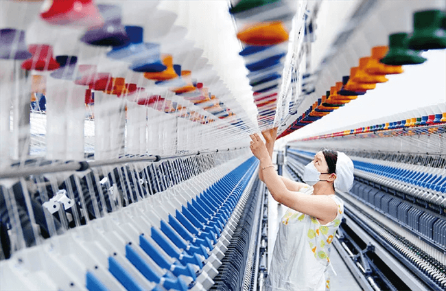 發(fā)展新質(zhì)生產(chǎn)力不是忽視、放棄傳統(tǒng)產(chǎn)業(yè),要用新技術(shù)改造提升傳統(tǒng)產(chǎn)業(yè),積極促進產(chǎn)業(yè)高端化、智能化、綠色化。圖為2024年3月12日,在山東騰峰紡織科技有限公司,工作人員在智能化紡紗設(shè)備前忙碌。 新華社記者 郭緒雷/攝