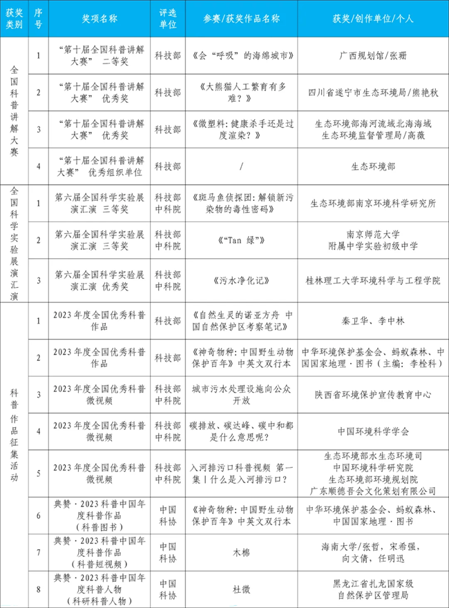 創新引領突破,2023年生態環境領域科普工作屢獲佳績!