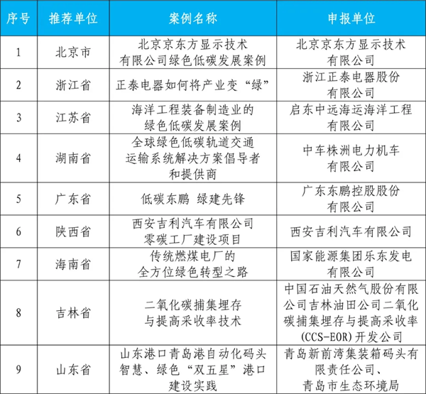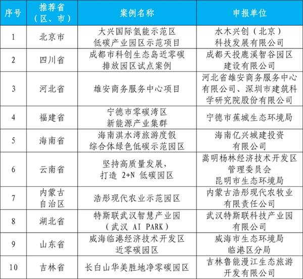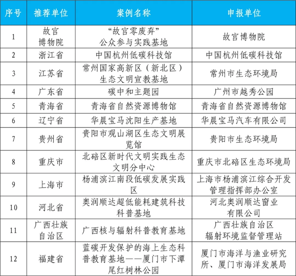生態環境部發布2023年綠色低碳典型案例獲選名單