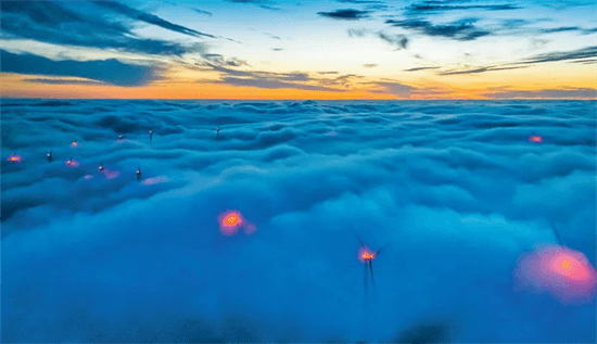 近年來,各地立足資源稟賦,加快清潔能源開發利用,推動發展方式綠色低碳轉型。圖為2023年2月23日晚,在湖北省宜昌市秭歸縣兩河口鎮云臺荒村拍攝的風力發電機組(無人機照片)。 新華社發 鄭家裕/攝