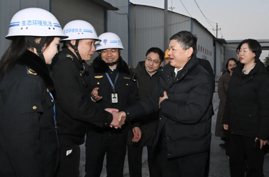 調(diào)研期間,黃潤秋還來到位于開封市的河南省盛邦華悅家具有限公司和河南和成無機(jī)新材料股份有限公司,調(diào)研秋冬季大氣污染防治措施落實(shí)情況,看望慰問正在現(xiàn)場開展強(qiáng)化監(jiān)督幫扶的工作人員。黃潤秋詢問強(qiáng)化監(jiān)督幫扶組工作生活情況,向他們及全體參與強(qiáng)化監(jiān)督幫扶工作的執(zhí)法人員致以問候和感謝。大家在數(shù)九隆冬辛勤工作,充分體現(xiàn)了“特別能吃苦、特別能戰(zhàn)斗、特別能奉獻(xiàn)”的生態(tài)環(huán)境保護(hù)鐵軍精神,為落實(shí)大氣污染區(qū)域聯(lián)防聯(lián)控措施、實(shí)現(xiàn)生態(tài)環(huán)境質(zhì)量目標(biāo)作出重要貢獻(xiàn)。祝同志們冬至安康,平安順利地完成監(jiān)督幫扶工作,并預(yù)祝新年快樂。