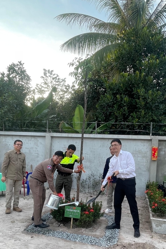 恩速帕市長表示,新安裝的太陽能路燈將為倫達艾德崇森市的發展提供重要支持。他還對中國生態文明研究與促進會及南京市江寧區生態文明促進會的捐贈表示感謝,并熱忱邀請兩會代表團在適當時間到訪倫達艾德崇森市,促進進一步的交流與合作。儀式結束時,恩速帕市長與盧奇志主任共同種植了一棵象征友誼的“中柬友誼樹”,寓意著中柬兩國在未來的友好合作與共同發展。