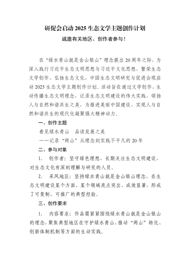 研促會(huì)啟動(dòng)2025生態(tài)文學(xué)主題創(chuàng)作計(jì)劃(PDF)