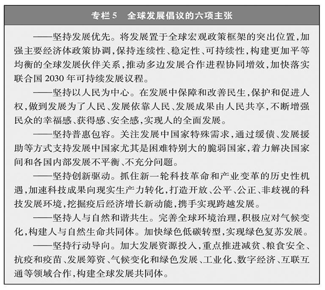 中國主持召開全球發展高層對話會,提出落實倡議的32項重要舉措,包括創設“全球發展和南南合作基金”,總額為40億美元;啟動中國—聯合國糧農組織第三期南南合作信托基金,并將加大對中國—聯合國和平與發展基金投入。兩年來,全球發展倡議得到國際社會廣泛響應,落實機制不斷健全,務實合作逐步落地,共同應對糧食安全、減貧、能源安全等突出問題。全球發展促進中心順利運轉,全球發展倡議項目庫不斷擴大,200多個合作項目開花結果。同時,中方發布《全球發展報告》,推動建立全球發展知識網絡,為破解發展難題貢獻了中國智慧。目前已有100多個國家和國際組織支持全球發展倡議,70多個國家參與在聯合國成立的“全球發展倡議之友小組”。