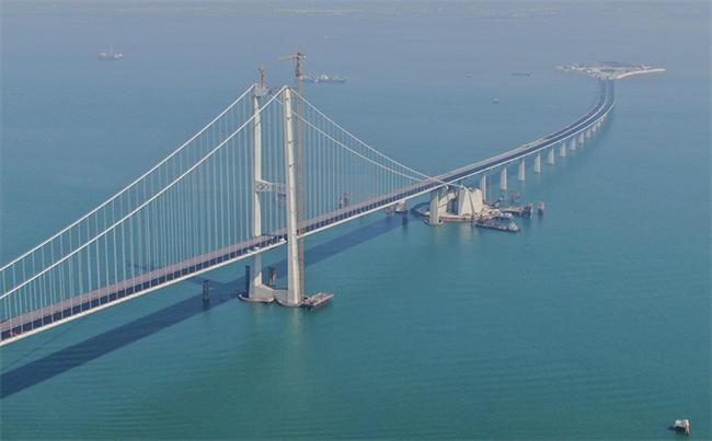 2023年11月28日,粵港澳大灣區超級工程深中通道主線正式貫通,這是深中通道伶仃洋大橋東塔及西人工島(無人機照片)。新華社記者?鄧華?攝