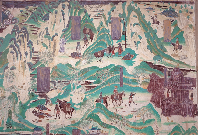今天,兩晉南北朝至隋唐的畫作絕大多數(shù)已經(jīng)失傳。這種色彩明快的唐代青綠山水畫,是莫高窟為后世留存的一段珍貴文化記憶。