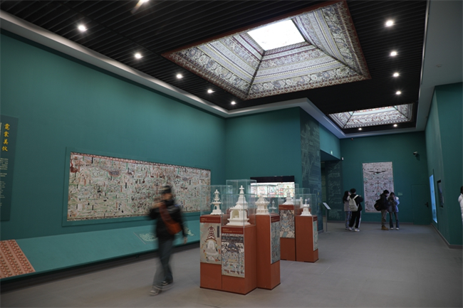 2024年1月20日,觀眾在敦煌研究院蘭州分院敦煌藝術(shù)館參觀。新華社記者 馬希平 攝