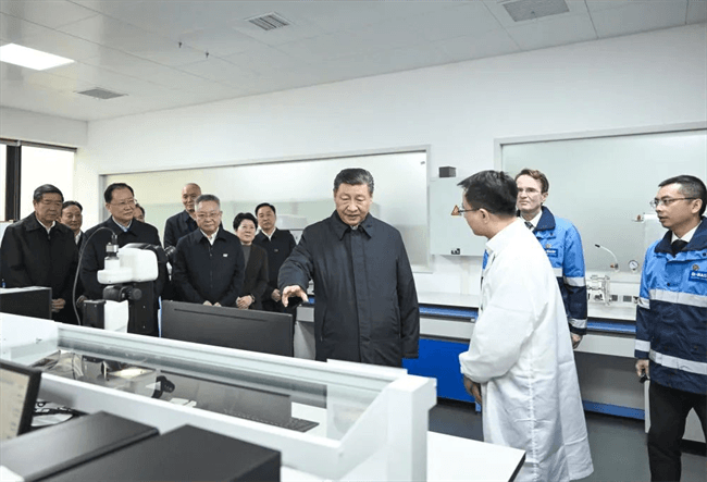 隨后,習近平來到巴斯夫杉杉電池材料有限公司考察。這是一家主營鋰離子電池正極材料研發、生產和銷售的中德合資企業。習近平聽取當地加快發展新質生產力、擴大高水平對外開放等情況介紹,察看企業產品展示,了解材料性能測試情況和電池生產流程。他強調,科技創新、高質量發展是企業不斷成長壯大、立于不敗之地的關鍵所在,民營企業、合資企業在這方面都可以大有作為。中國開放的大門會越開越大,我們愿意同世界各國加強交流合作,歡迎更多外國企業來華投資發展。