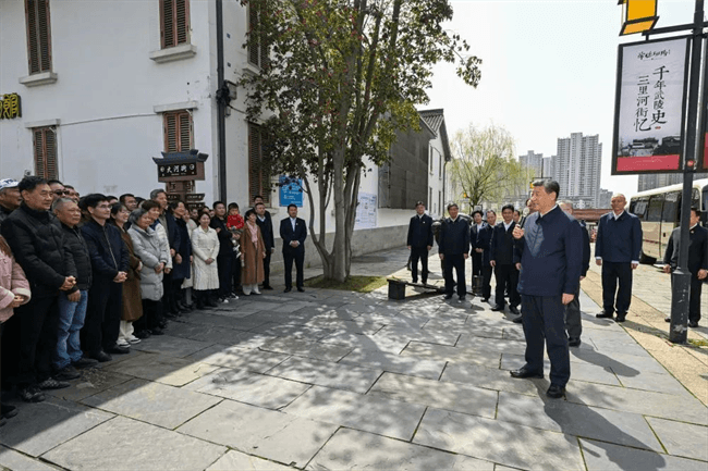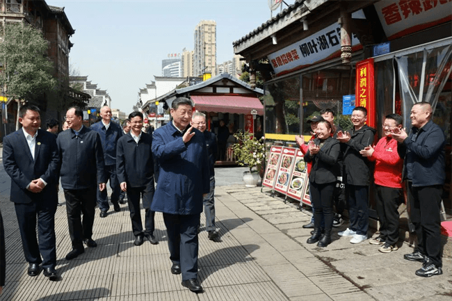 3月18日至21日,中共中央總書記、國家主席、中央軍委主席習近平在湖南考察。這是19日上午,習近平在常德河街考察。新華社記者 王曄 攝