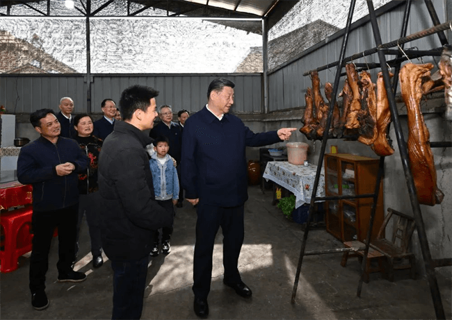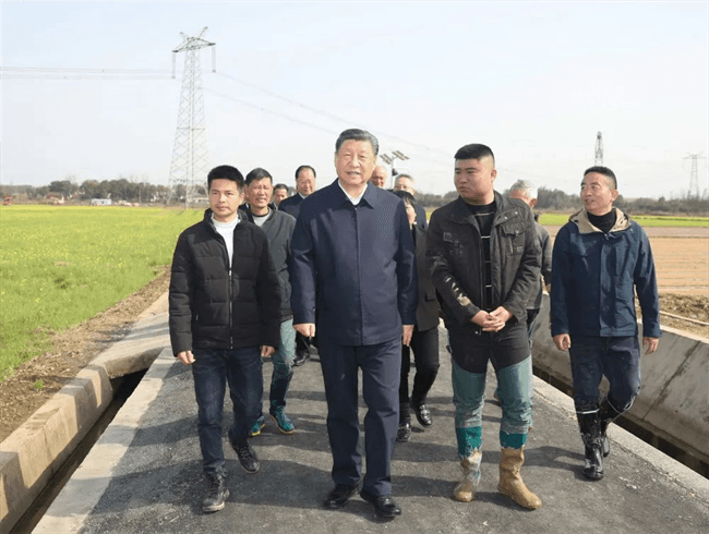 習近平隨后來到種糧大戶戴宏家中,察看農機具和春耕物資準備,并前往村黨群服務中心了解當地為基層減負、提升基層治理效能等情況。他指出,要堅決整治形式主義、官僚主義問題,精兵簡政,持之以恒抓好這項工作。他勉勵基層干部在產業發展和鄉村治理上群策群力,不斷干出讓農民群眾認可的實績。