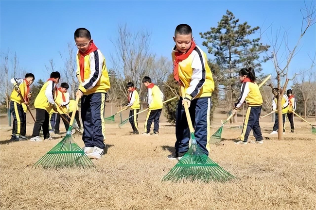 △2024年3月12日,北京城市綠心森林公園,參加植樹節主題活動的學生們學習義務植樹知識,并進行現場撫育管護。
