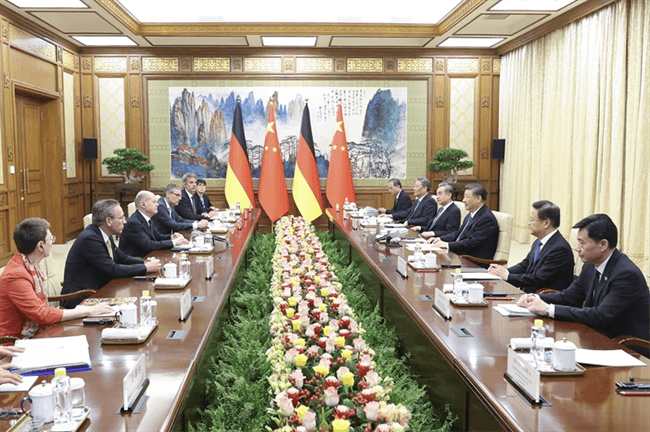 習近平強調,中德兩國都曾為人類文明進步作出重大貢獻。中德之間沒有根本利益沖突,彼此不構成安全威脅。中德合作對雙方有利,對世界有利。世界越是動蕩,雙方越要提升兩國關系的韌性和活力,堅持中德關系的合作主基調和發展大方向,牢牢把握中德是全方位戰略伙伴這一定位。中國對德政策保持高度穩定性和連貫性。雙方應該繼續以開放的胸襟密切交往,增進戰略互信。只要雙方堅持相互尊重、求同存異、交流互鑒、合作共贏,兩國關系必將繼續行穩致遠。