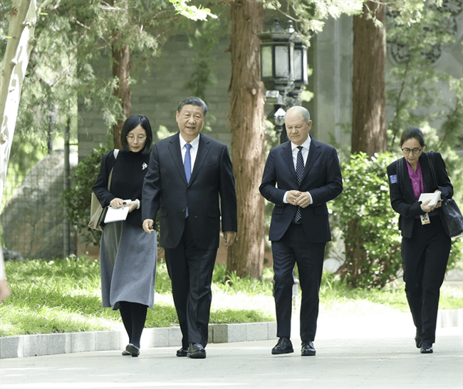 會見后,習近平同朔爾茨一起散步并共進午餐,就廣泛議題進一步深入交流。