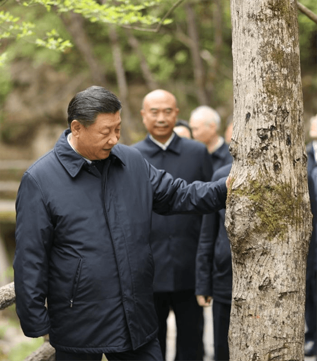 2020年4月20日,中共中央總書記、國家主席、中央軍委主席習近平在陜西考察調研。這是習近平在位于商洛市柞水縣的秦嶺牛背梁國家級自然保護區,考察秦嶺生態保護情況。 新華社記者 鞠鵬 攝