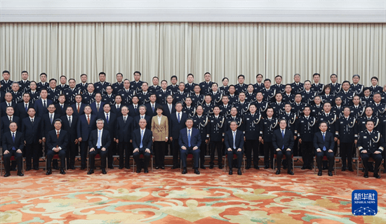 5月28日,黨和國家領導人習近平、李強、蔡奇、丁薛祥、李希等在北京人民大會堂會見全國公安工作會議代表。新華社記者 鞠鵬 攝