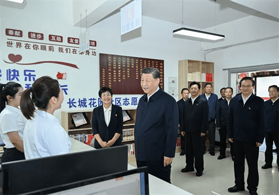 6月19日至20日,中共中央總書記、國家主席、中央軍委主席習近平在寧夏考察。這是19日下午,習近平在銀川市金鳳區長城花園社區黨群服務中心便民服務廳了解社區開展便民惠民服務等情況。新華社記者 謝環馳 攝