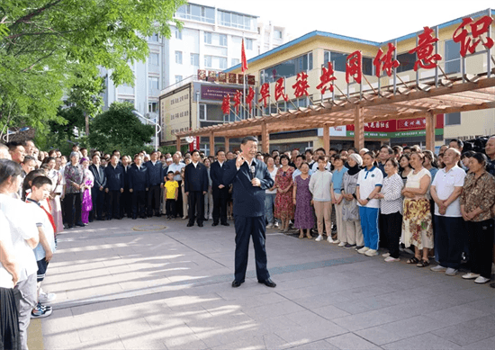 傍晚時分,社區廣場十分熱鬧,居民們看見總書記來了,紛紛圍攏過來,熱烈鼓掌歡迎。習近平親切地對大家說,時隔4年,我再次來寧夏看望各族干部群眾,見到大家非常高興!中華民族是一個大家庭,各族人民要像石榴籽一樣緊緊抱在一起。要不斷鑄牢中華民族共同體意識,把各族人民的心緊緊連在一起,把各方面的力量廣泛凝聚到一起,共同推進中國式現代化,共襄中華民族偉大復興的盛舉。