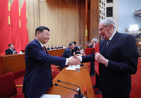 儀式號角響起,習近平首先向獲得2023年度國家最高科學技術獎的武漢大學李德仁院士和清華大學薛其坤院士頒發獎章、證書,同他們熱情握手表示祝賀。隨后,習近平等黨和國家領導人同兩位最高獎獲得者一道,為獲得國家自然科學獎、國家技術發明獎、國家科學技術進步獎和中華人民共和國國際科學技術合作獎的代表頒發證書。