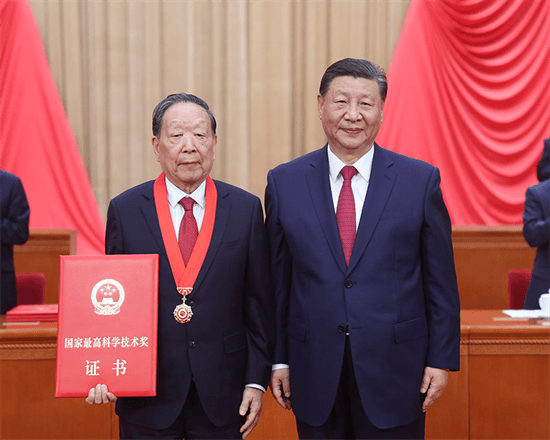 6月24日,全國科技大會、國家科學技術獎勵大會和中國科學院第二十一次院士大會、中國工程院第十七次院士大會在北京人民大會堂隆重召開。中共中央總書記、國家主席、中央軍委主席習近平向獲得2023年度國家最高科學技術獎的武漢大學李德仁院士頒獎。新華社記者 謝環馳 攝