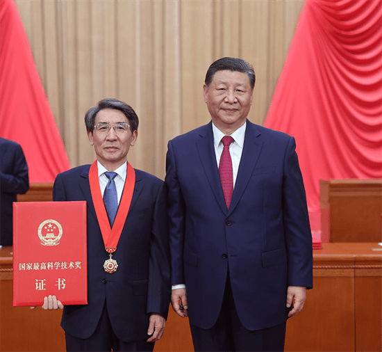 6月24日,全國科技大會、國家科學技術獎勵大會和中國科學院第二十一次院士大會、中國工程院第十七次院士大會在北京人民大會堂隆重召開。中共中央總書記、國家主席、中央軍委主席習近平向獲得2023年度國家最高科學技術獎的清華大學薛其坤院士頒獎。新華社記者 謝環馳 攝