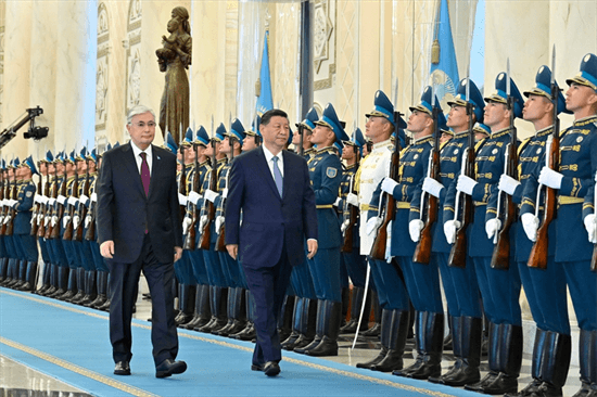 托卡耶夫為習近平舉行隆重歡迎儀式。
