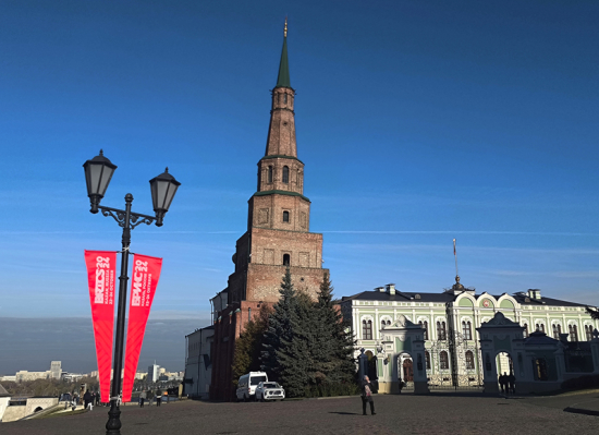 夜幕下的喀山,處處流光溢彩。一輛輛載著各國貴賓的車輛掠過克里姆林宮城墻“金磚燈光秀”,駛向自由廣場上的喀山市政廳。