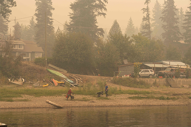 在整個內陸地區的社區,濃煙遮蔽了群山,使陽光變暗。