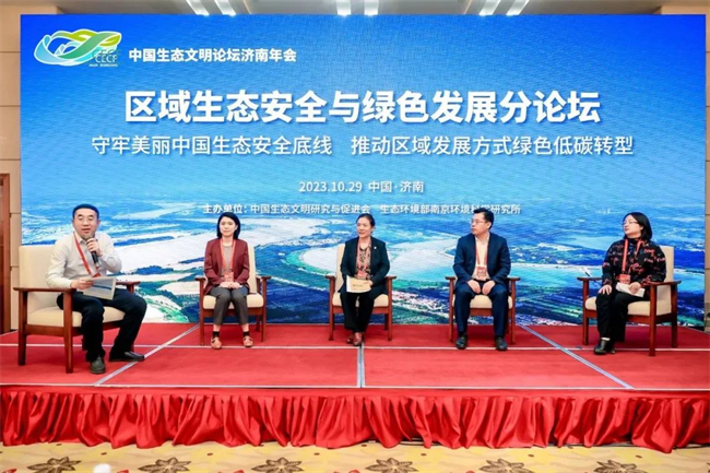 2023年10月28—29日,中國生態文明論壇在山東省濟南市召開。本次年會以“生態文明 美麗中國——譜寫人與自然和諧共生的現代化建設新篇章”為主題,年會共舉行10個分論壇,其中中國生態文明研究與促進會和生態環境部南京環境科學研究所共同舉辦了區域生態安全與綠色發展分論壇。
