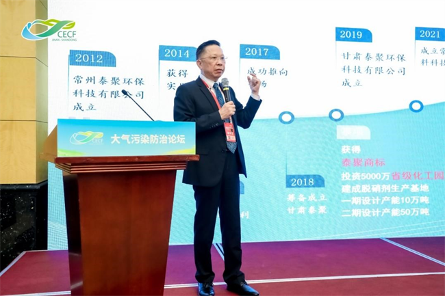 泰聚環(huán)保總經理李京寧介紹高分子干法脫硝工藝